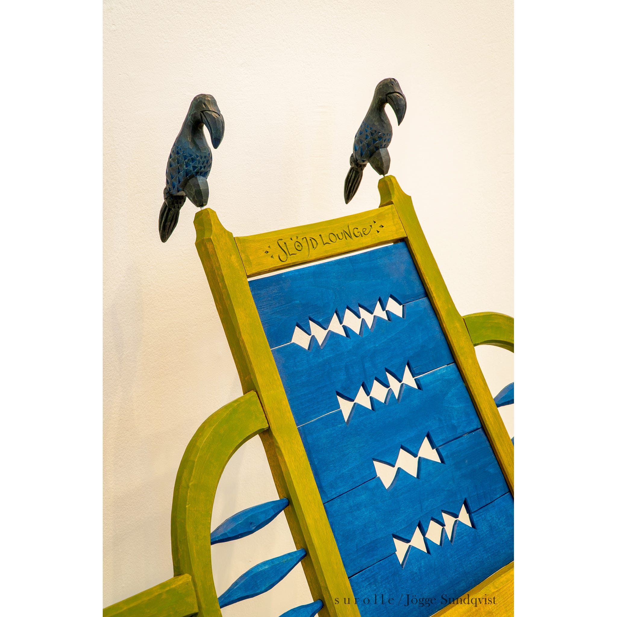The two ravens at the top sit on removable steel pins, which was practical because I knew it would be moved to various exhibitions throughout Sweden. While sketching, I remembered that Odin’s two ravens, Hugin and Munin, sat on his shoulders. They flew out into the world and acted as spies, then returned home to Valhalla to report back with all their raven wisdom.
